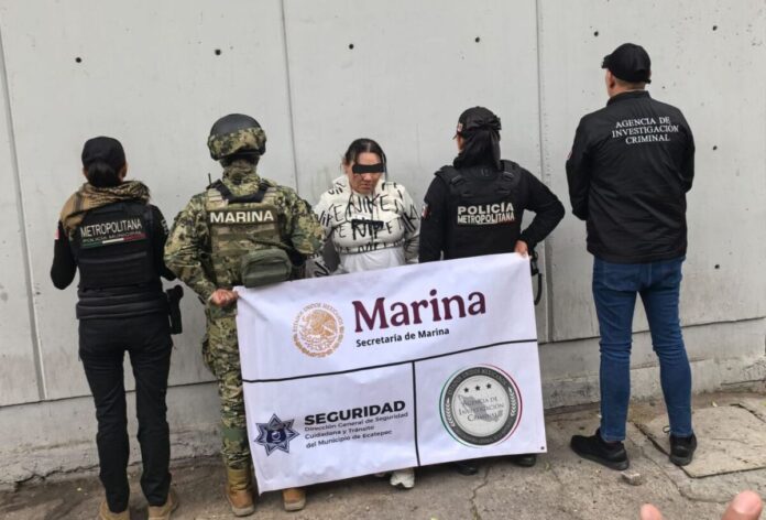 Elementos de la Marina Armada y de la Policía Metropolitana de Ecatepec, en coordinación con la FGR, lograron la captura de Nancy Palomo Taborda, alias “La Valeria”, de nacionalidad colombiana. La detenida está presuntamente relacionada con la célula delictiva conocida como “Golden Roma”, una facción de “La Chokiza”.