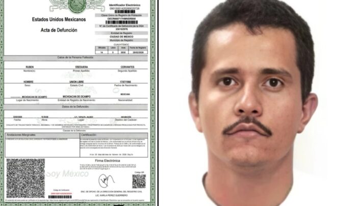 El Registro Civil de la Ciudad de México emitió el acta de defunción de Rubén Oseguera Cervantes, conocido como “El Mencho”, ex líder del Cártel Jalisco Nueva Generación (CJNG), quien falleció tras resultar herido durante un operativo de las Fuerzas Especiales del Ejército en Tapalpa.